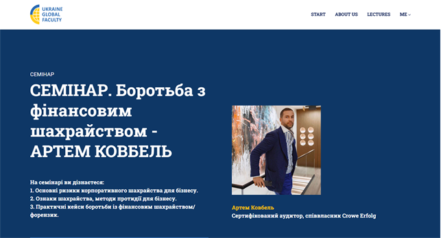 Про спікера: Артем Ковбель — сертифікований аудитор, партнер Crowe Erfolg та автор книг із боротьби з корпоративним шахрайством.