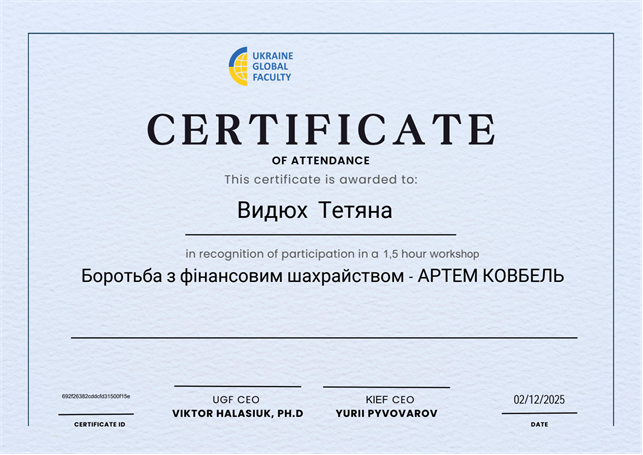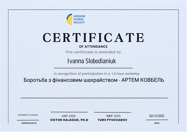 2 грудня 2025 року здобувачі спеціальності «Менеджмент» ОКР «бакалавр» долучилися до фахового вебінару «Боротьба з фінансовим шахрайством. Forensic 2025 — практика».