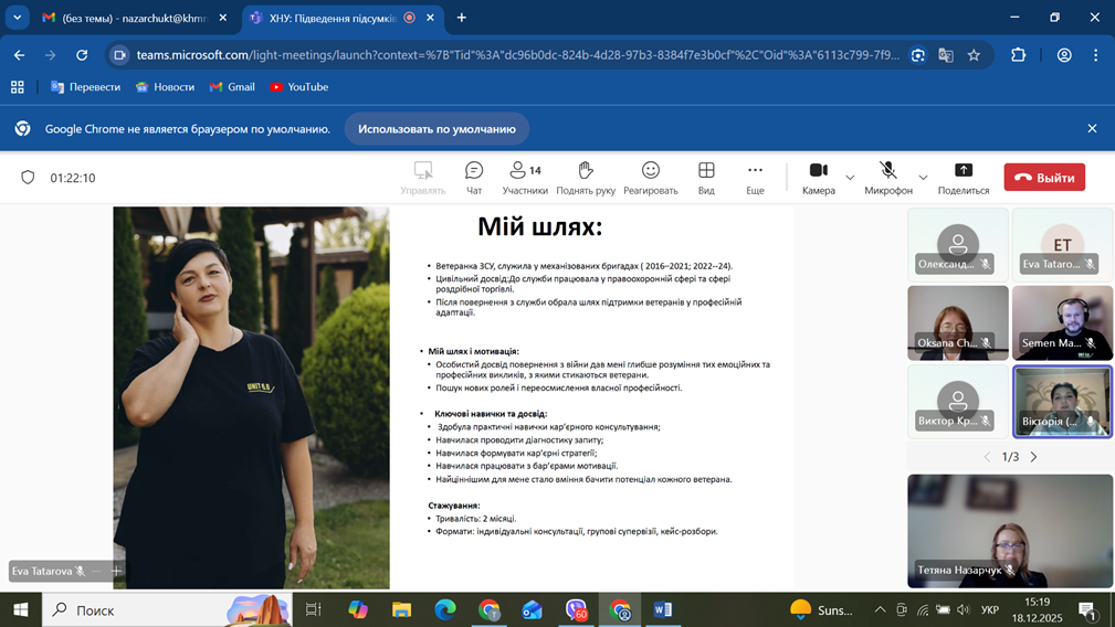 Доцентка кафедри менеджменту та адміністрування Тетяна НАЗАРЧУК долучилася до рецензування сертифікаційних робіт ветеранів та ветеранок за програмою UNIT 6.0.