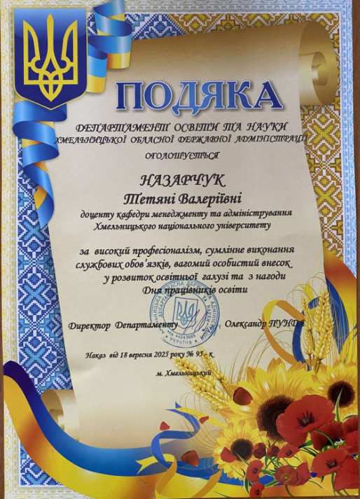 Результати науково-дослідної роботи кафедри не залишились непоміченими і з боку керівництва університету – упродовж останніх років колектив кафедри неодноразово нагороджувався грамотами за призові місця в рейтингу кафедр Хмельницького національного університету.