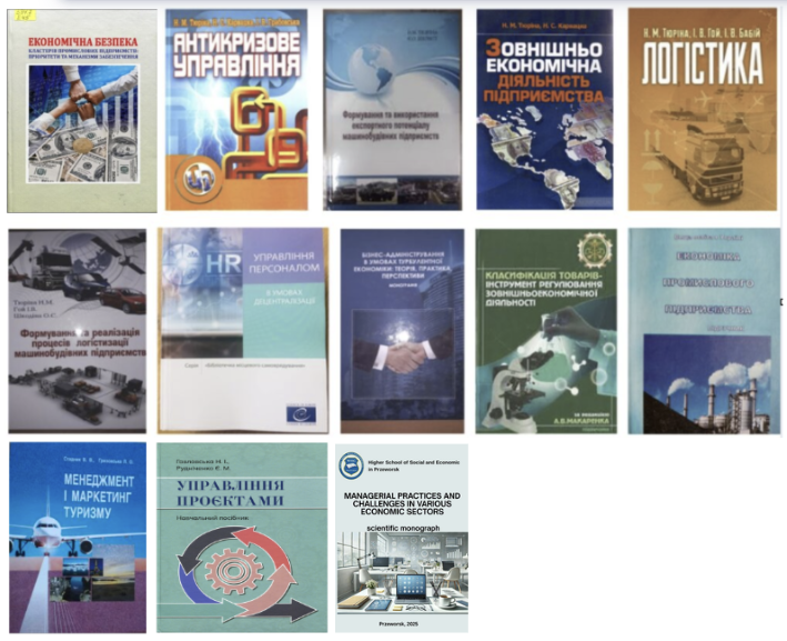 За період 2021-2023 рр. викладачами кафедри видано 3 навчальних посібники (Управління проєктами, Управління зовнішньо-економічною діяльністю, Менеджмент організацій); 13 монографій (одноосібних та участь в колективних монографіях), в тому числі 10 – у закордонних виданнях; опубліковано 28 статтей в науково-метричних базах Scopus та Web of Science; 48 статтей в журналах та збірниках праць за кордоном; 116 статтей у фахових виданнях України.
