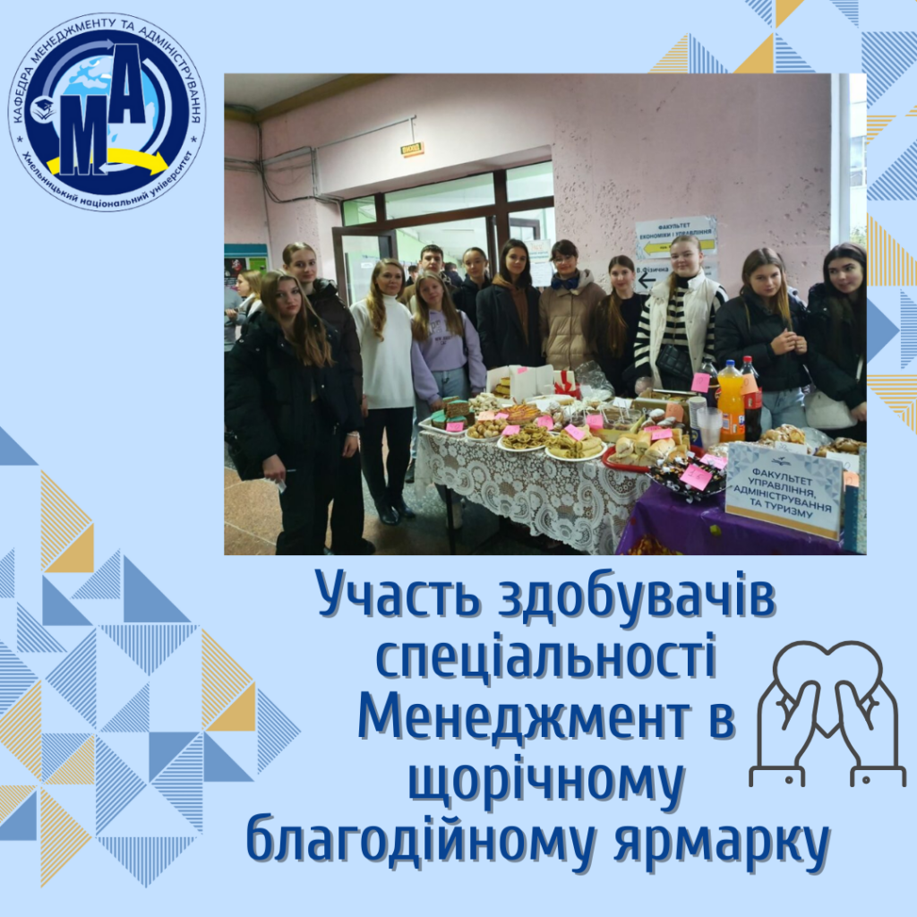8 жовтня 2025 року здобувачі вищої освіти спеціальності “Менеджмент” (освітні програми “Менеджмент” та “Логістика”) взяли активну участь у щорічному благодійному ярмарку.